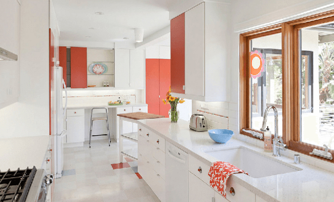 Beyaz ağrılıktaki mutfak dekorasyonunda zemin rengi, tezgah rengi ya da aksesuarlardan birini koyu renk tercih ederek kontrast yaratabilirsiniz. Kontrast da mekana derinlik katar. Beyaz renk pek çok farklı renkle uyum içinde kullanılabileceği gibi, mutfağı başta aşağı beyaz da dekore edebilirsiniz.
