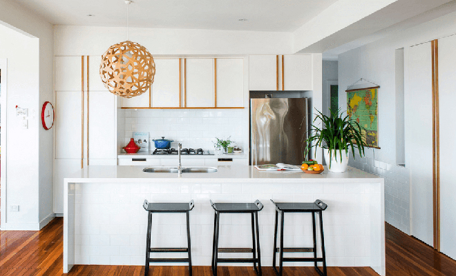Beyaz ve ahşap bir arada uyum içinde olacaktır. Açık mutfak kullanacak olanlar, ahşap rengini salondaki mobilyalar ya da yemek masası ile eşleştirebilir