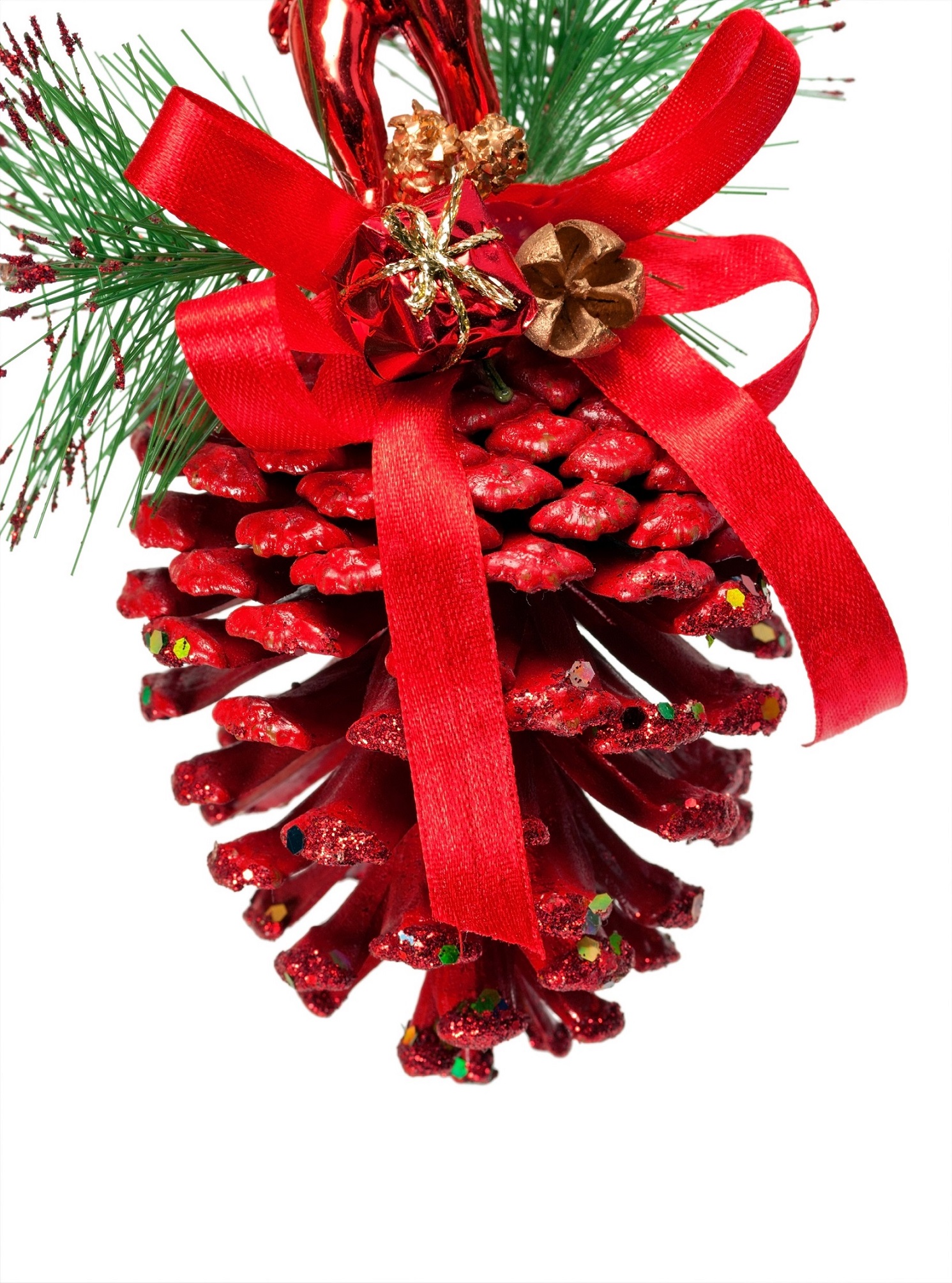 Doğal çam kozalaklarından yapılmış yılbaşı süsleri evinize ferahlık ve doğallık katacak. Düfa Sprey Boya ile simlendirip boyayabileceğiniz kozalakları yılbaşı ağacınızı süslemek için kullanabilirsiniz.