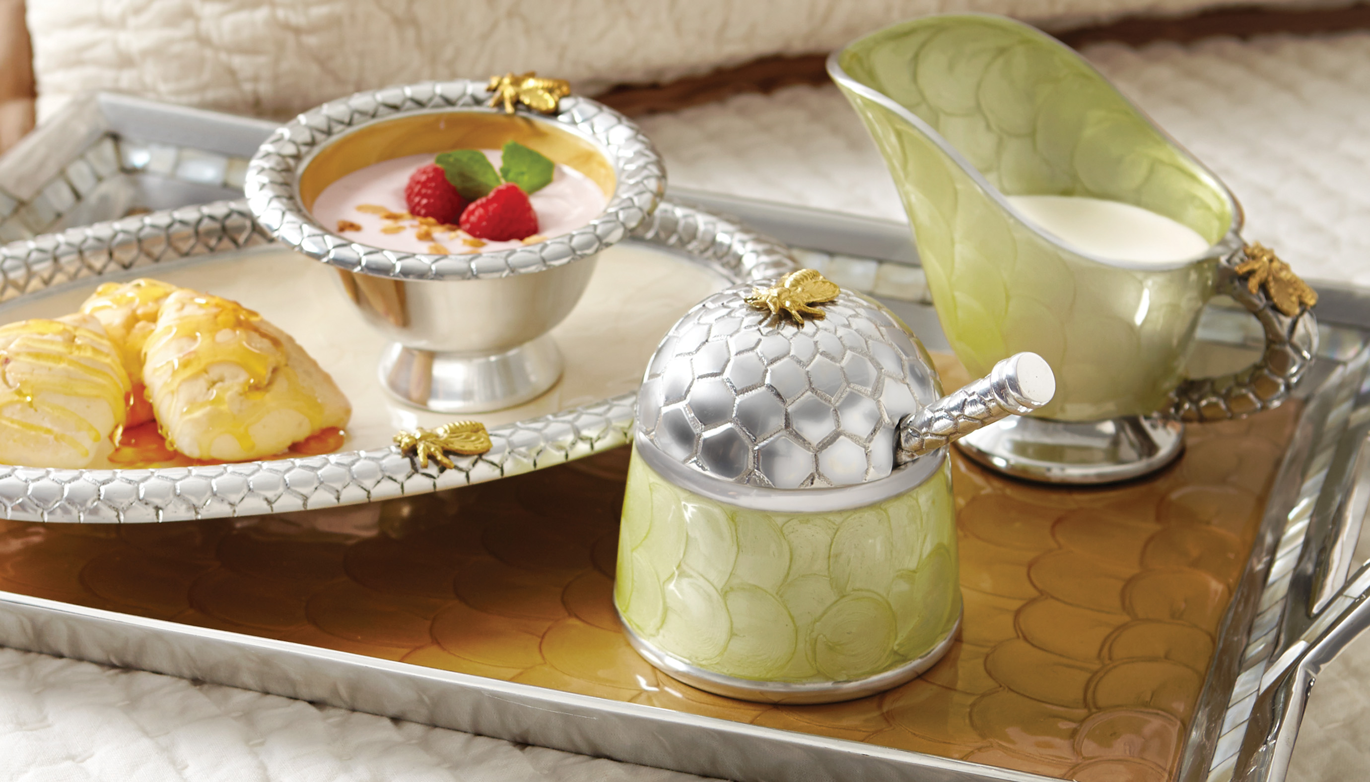 Dünya markalarının eşsiz ve modern tasarımlarının yer aldığı yeni sezon koleksiyonları arasında zarafeti sofralarla buluşturan takımlardan Moser‘in tamamen el işçiliğiyle üretilen aksesuarlarına, büyük bir cam ustalığıyla hayat bulan Massimo Lunardo’nın dikkat çekici objelerinden desenleriyle olduğu kadar dokularıyla da dikkat çeken retro yastık ve örtülere ve her biri sanat eseri görünümünde olan Borowski’nin tasarımlarından yemek masalarına farklı bir dokunuş yapan Flux’un tabak ve fincanlarına kadar pek çok seçenek yer alıyor.