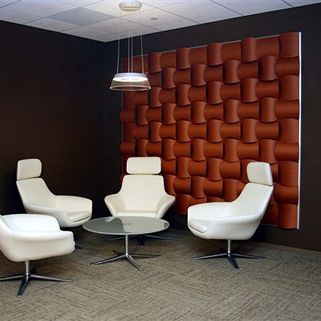 Ses aralıklarının çok olduğu gürültülü mekanlar için akustik avantajlar sağlayan Wovin Wall paneller, işlevsel olarak yankıyı verimli bir şekilde azaltıyor. Akustik testlerden geçirilen karoların tüm kombinasyonları, gürültü ve sesi içine hapsederek iç mekanlardaki ses dengesini düzenliyor. Ayarlanabilir arkadan aydınlatma seçenekleriyle göz alıcı etkiler oluşturan paneller, ‘dimmer’lar ve renkli ışıklar sayesinde çarpıcı bir görsellik sunuyor.