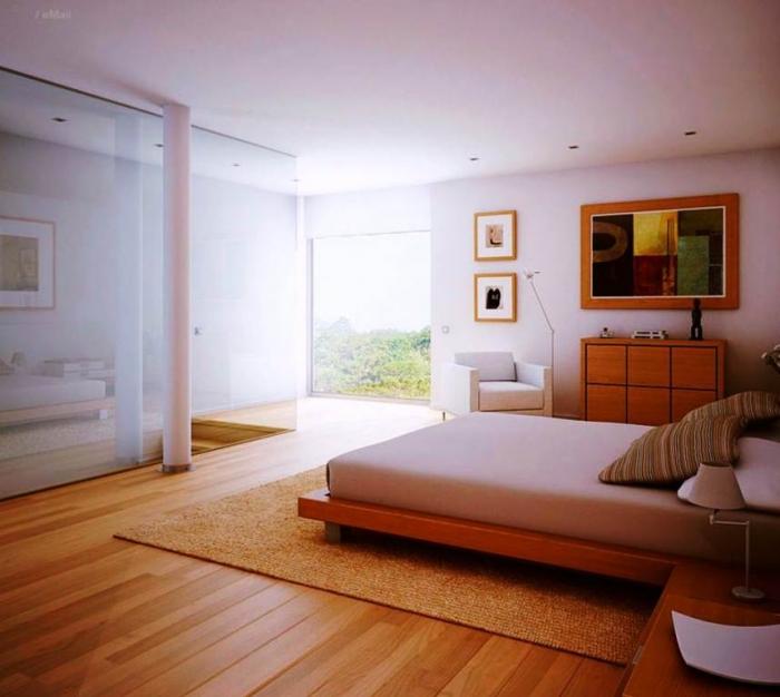 Ahşap zeminler: Ahşap, doğal, zevkli ve sade malzemelerden biridir. Her tür mobilyaya uyum sağlaması ve çok kullanışlı olması sebebiyle, günümüzde çok kullanılan bir zemin çeşididir. Ahşap zemin, yatak odanıza zarafet ve şıklık katar.
