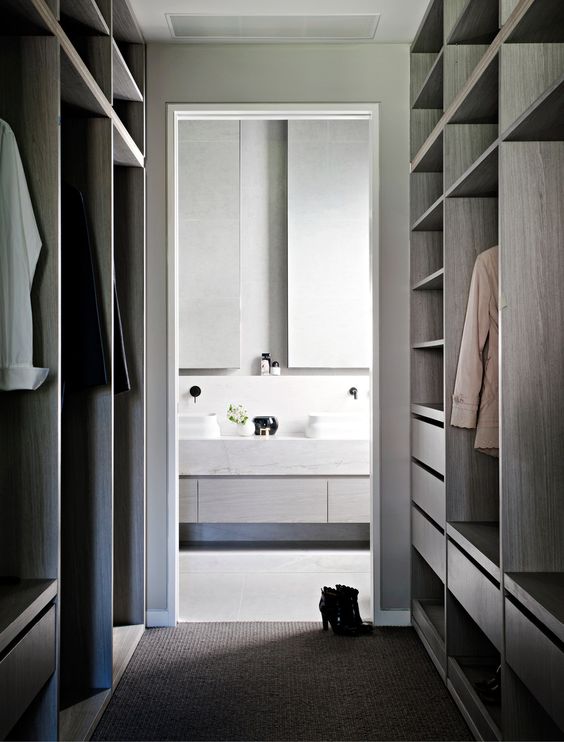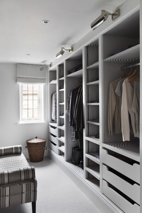 Giyinme odasında ihtiyacınız olan temel malzemeler; raflar, çekmeceler ve asma raylardır. Raflarınızı giysi koymak için kullanabileceğiniz gibi kutu koymak için de kullanabilirsiniz. Kazak, pantolon gibi askıda durmaması gereke giysiler raflarda tutulabilir. Giysileri türlerine göre ayırarak yerleştirirseniz kolayca bulabilirsiniz.